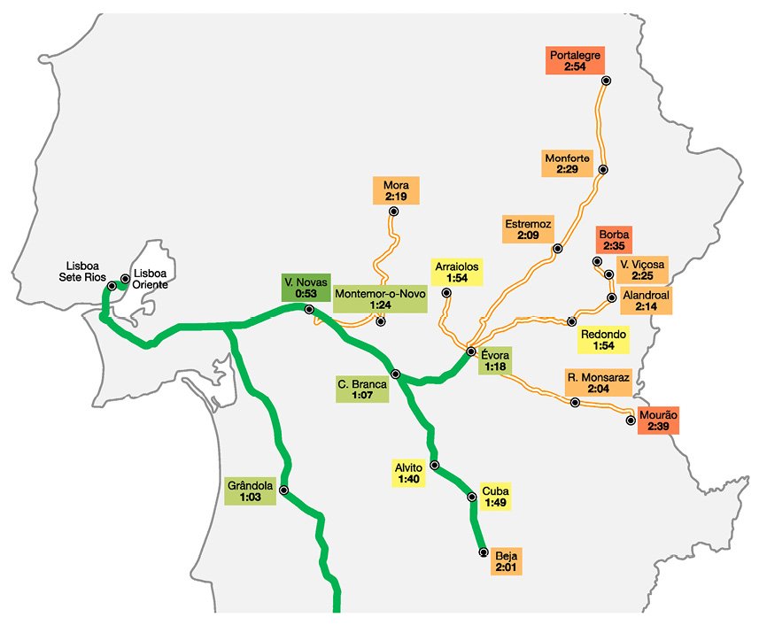 Assim, Évora deixará de ser estação terminal, voltando os passageiros a poder prosseguir para leste a partir da mesma, agora para Elvas, Badajoz, Madrid… As possibilidades serão inúmeras, havendo vontade dos operadores em servir bem esta linha.