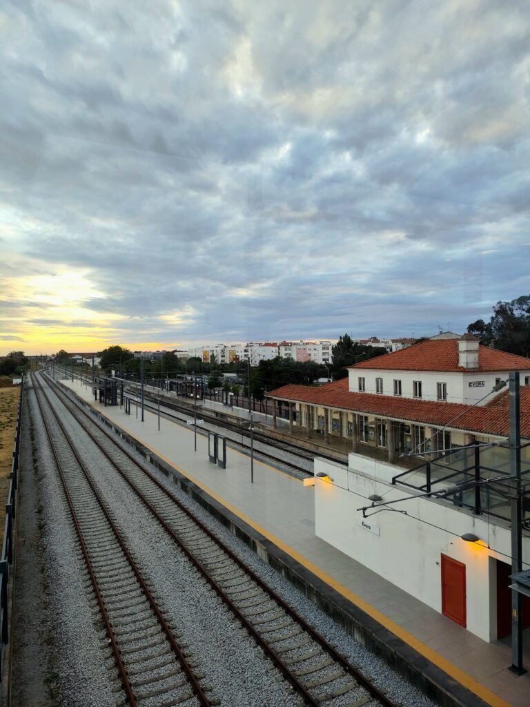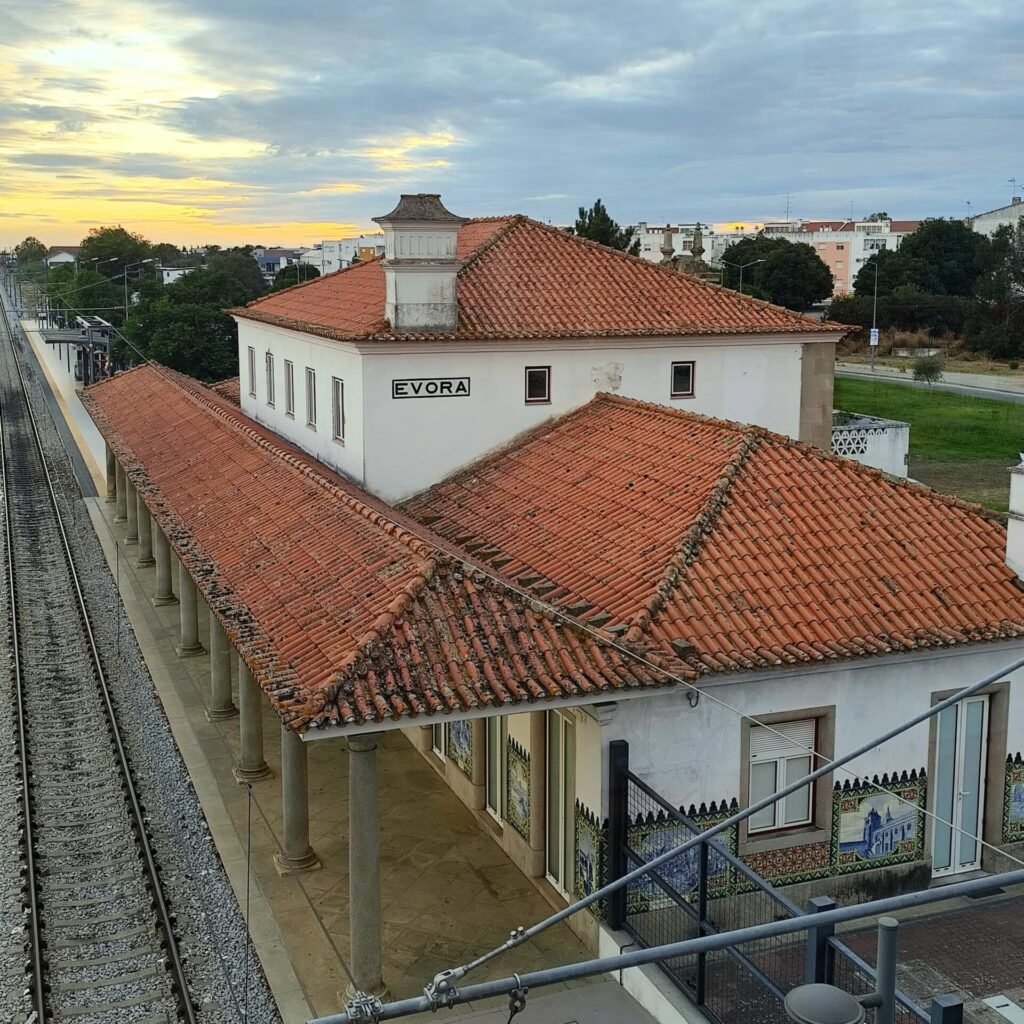 Visitei a Estação Ferroviária de Évora no dia 19 de outubro de 2025, ao final da tarde, num dia nublado outonal.
