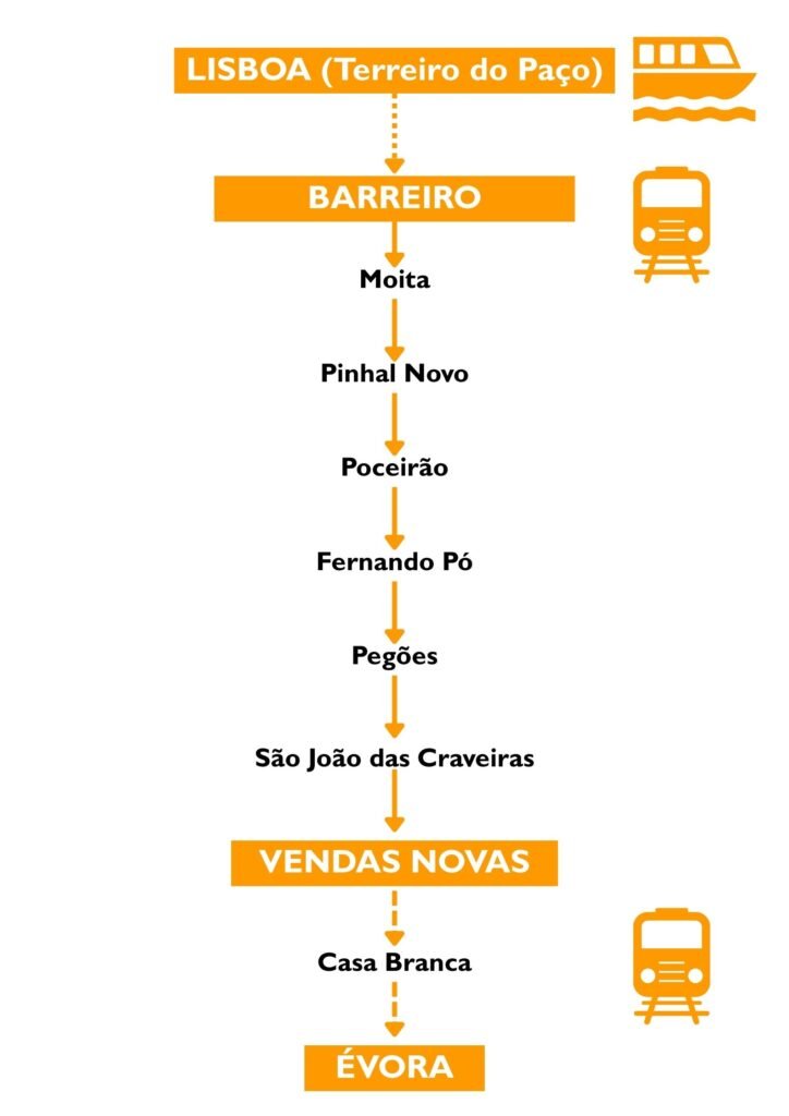Este Regional faria também paragem nas estações intermédias entre Pinhal Novo e Vendas Novas: Poceirão, Fernando Pó, Pegões e São João das Craveiras, localidades que hoje apenas são servidas pelo primeiro e pelo último Intercidades de Évora. Trata-se de um território da AML com procura real e contínua, que beneficiaria claramente de um serviço regular, previsível e pensado para o quotidiano.