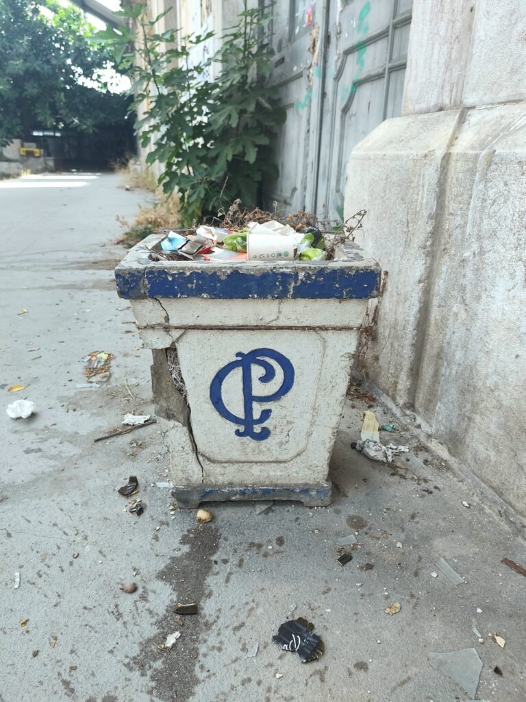 Antigo elemento (vaso) da CP ainda no local, um pequeno detalhe que resiste entre o abandono e a memória ferroviária do Barreiro.