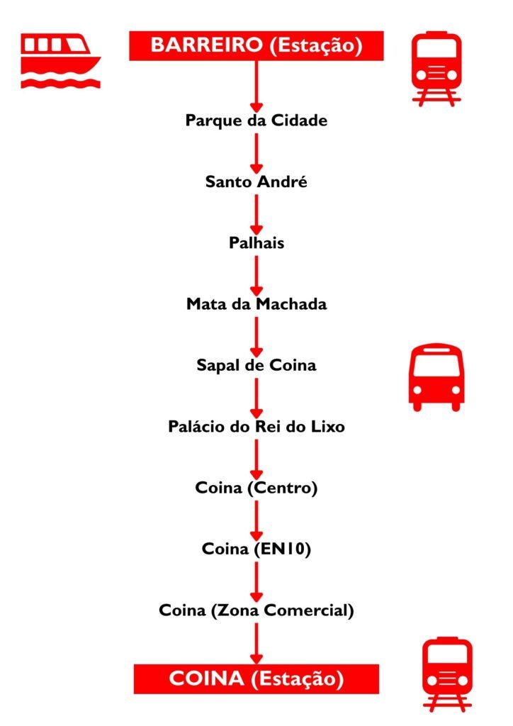 Em complemento, sugiro ainda o reforço das ligações em autocarro entre o Barreiro e Coina, criando um verdadeiro serviço shuttle entre as duas estações. Este reforço permitiria que, quem utiliza a Fertagus, chegasse mais rapidamente ao Barreiro e, ao mesmo tempo, facilitaria o acesso aos barcos a quem vive mais longe do terminal fluvial, como em Palhais, Santo André, Verderena ou Coina. Estas são zonas que, apesar de pertencerem ao concelho do Barreiro, continuam mal servidas no que respeita à ligação direta ao principal nó intermodal da cidade. Uma frequência de 10 a 15 minutos em período de maior procura permitiria transformar esta ligação num verdadeiro serviço de alimentação da ferrovia e da travessia fluvial.