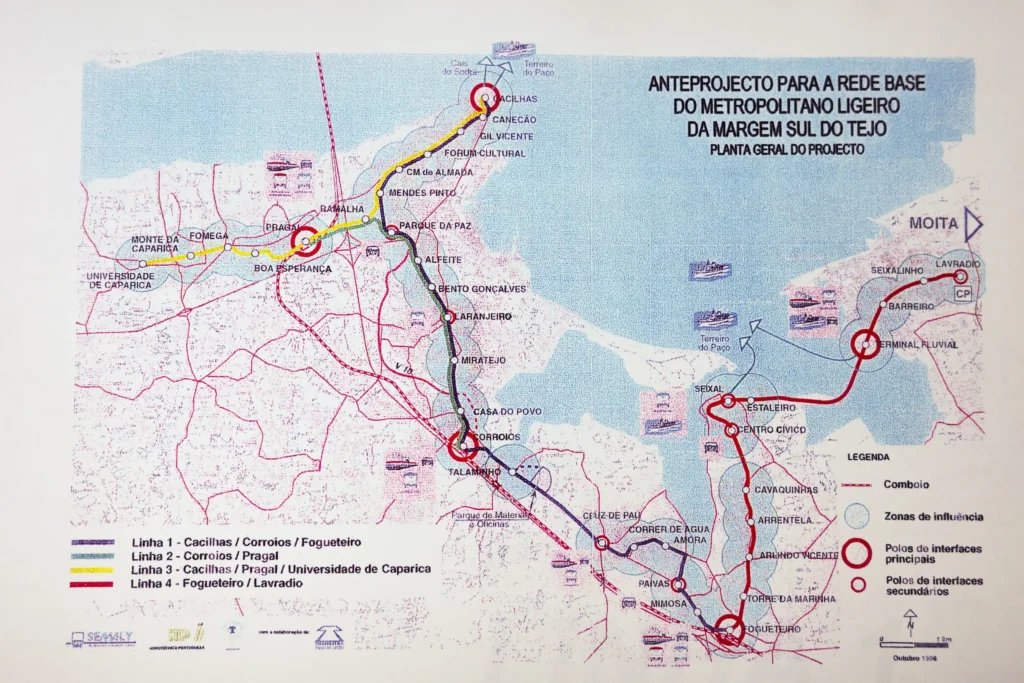 Anteprojeto do Metro Sul do Tejo, onde já estava prevista a ligação entre Almada, Seixal e Barreiro.